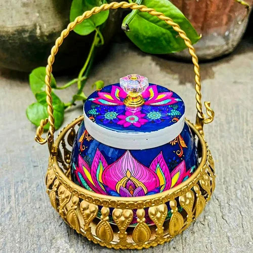 Set of 6 – 4-Inch Enamel Printed Pichwai Cow Jars – Decorative Metal Storage Jars with Lid – Traditional Indian Art Containers for Sweets, Spices, Pooja & Return Gifting